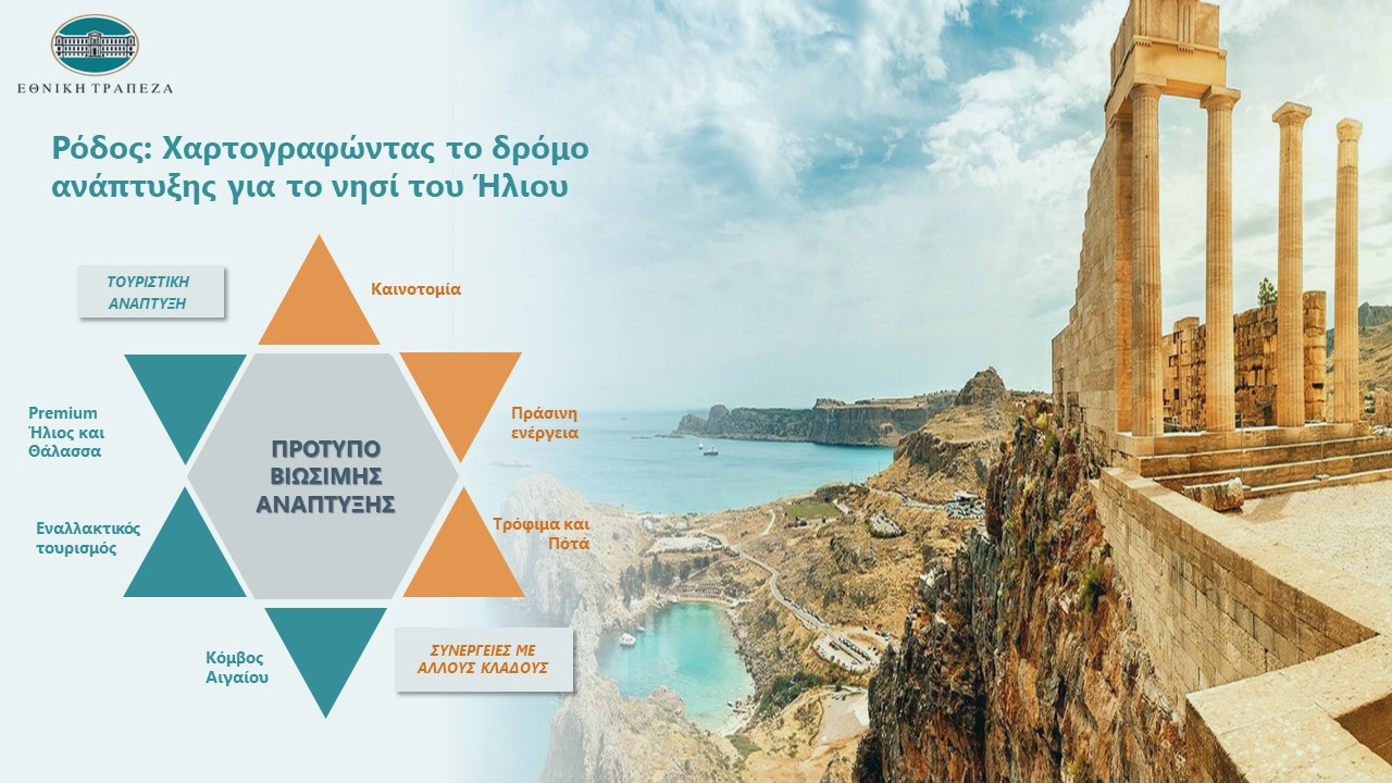 Συνοψίζοντας, η Ρόδος έχει όλα τα φυσικά εχέγγυα για να αναχθεί σε πρότυπο βιώσιμης ανάπτυξης, ενώ υψηλής σημασίας είναι η διάθεση των επιχειρηματιών του νησιού να το κάνουν πράξη με ενεργή επενδυτική διάθεση σε συνδυασμό με ώριμη συντεταγμένη στόχευση στο να αναδείξουν το τοπικό brand του νησιού τους.